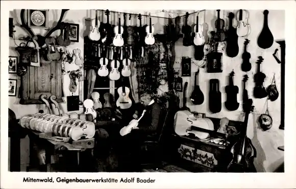 Ak Mittenwald in Oberbayern, Geigenbauerwerkstätte Adolf Baader
