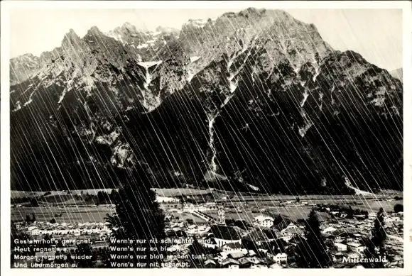 Ak Mittenwald in Oberbayern, Gesamtansicht, Regen
