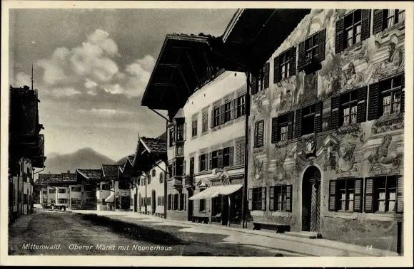 Ak Mittenwald in Oberbayern, Gröblalm, Oberer Markt mit Neunerhaus