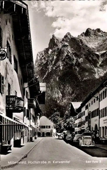 Ak Mittenwald in Oberbayern, Mittenwald. Hochstraße m. Karwendel