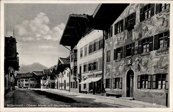 Ak Mittenwald in Oberbayern, Oberer Markt mit Neunerhaus, Fassade