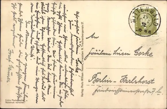 Zustand, siehe Scan, gelaufen, 1932 - ca 14 cm X 9 cm