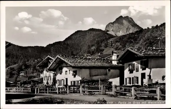 Ak Mittenwald in Oberbayern, Partie im Gries mit Wetterstein