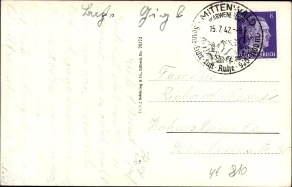 Zustand, siehe Scan, gelaufen, 1942 - ca 14 cm X 9 cm