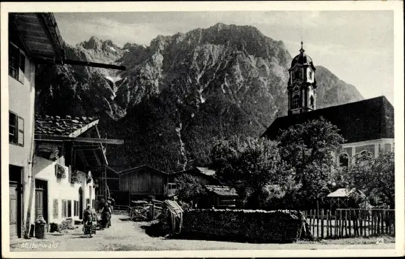 Ak Mittenwald in Oberbayern, Straßenansicht, Kirche