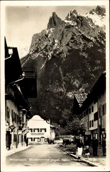 Ak Mittenwald in Oberbayern, Straßenpartie gegen Karwendel