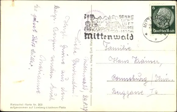 Ak Mittenwald in Oberbayern, Untere Marktstraße mit Viererspitze, Metzgerei