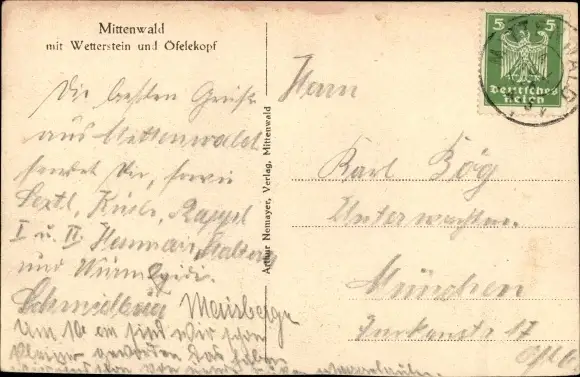 Ak Mittenwald in Oberbayern, Wetterstein, Öfelekopf