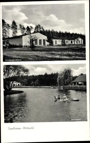 Ak Mittwald Espelkamp in Westfalen, Kreisjugendheim, Badeteich