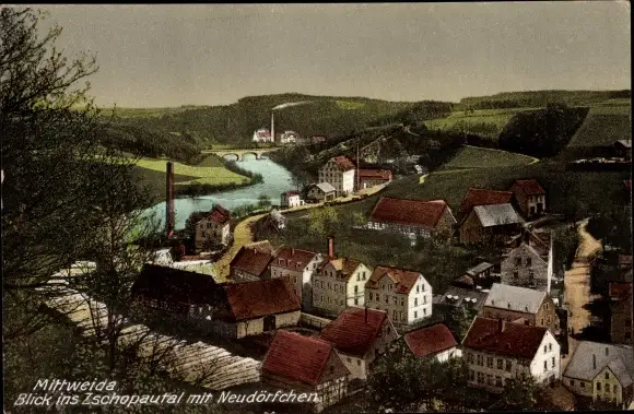 Ak Mittweida in Sachsen, Blick ins Zschopautal mit Neudörfchen