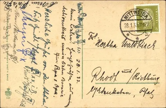 Zustand, siehe Scan, gelaufen, 1933 - ca 14 cm X 9 cm