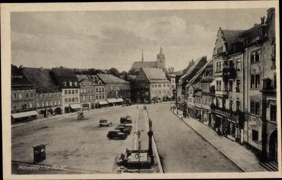 Ak Mittweida in Sachsen, Markt, Kirche, Geschäftshäuser