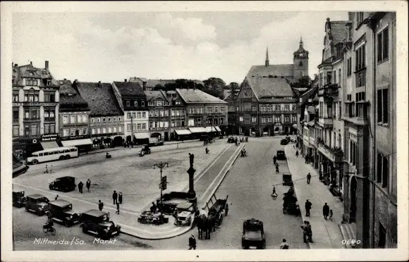 Ak Mittweida in Sachsen, Markt, Vogelschau