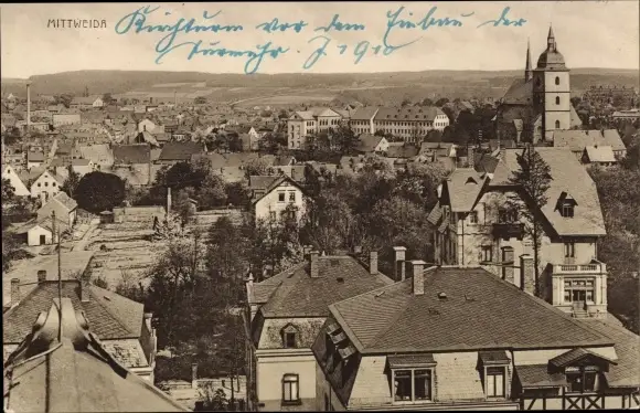Ak Mittweida in Sachsen, Ortsansicht mit Kirche