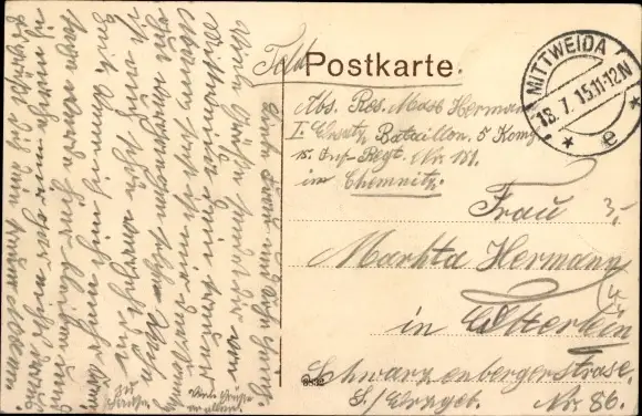 Zustand, siehe Scan, gelaufen, 1915 - ca 14 cm X 9 cm