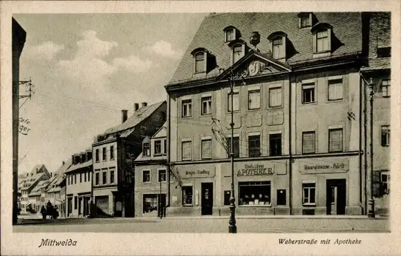 Ak Mittweida in Sachsen, Weberstraße mit Apotheke, Café, 1939, Gebäudefront