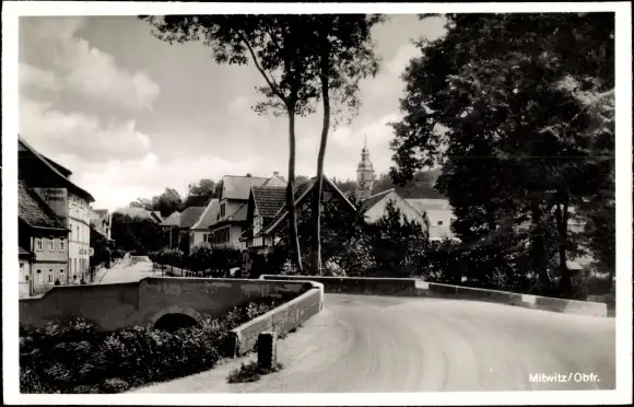 Ak Mitwitz in Oberfranken, Straßenpartie, Teilansicht Ort, Kirchturm