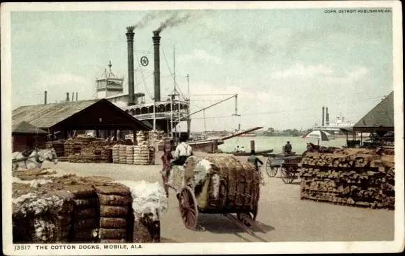 Ak Mobile Alabama USA, Hafen, Verschiffung von Baumwolle