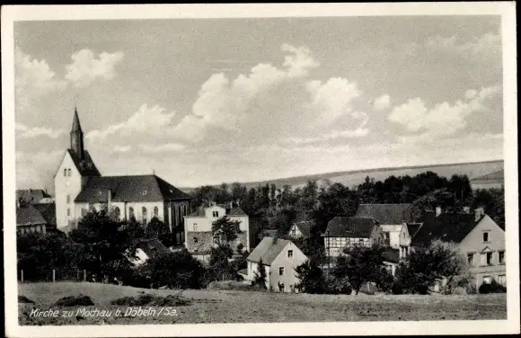 Ak Mochau Döbeln in Sachsen, Teilansicht der Ortschaft, Kirche
