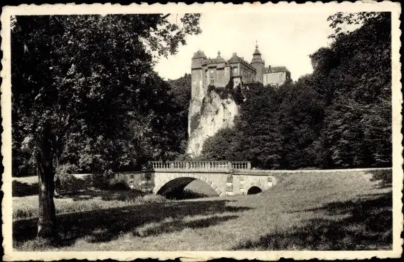 Ak Modave Lüttich Wallonien, Chateau et Pont vus du Parc