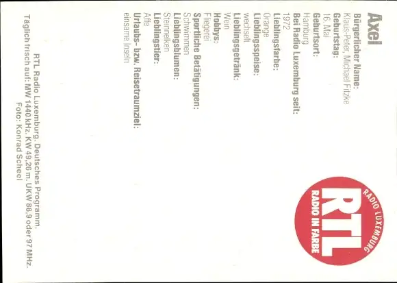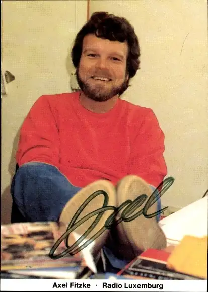 Ak Moderator Axel Fitzke, Radio Luxemburg, Portrait, Autogramm