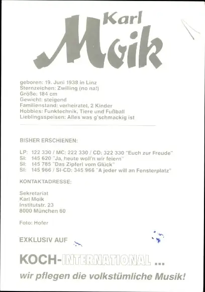 Ak Moderator Karl Moik, Portrait, Autogramm