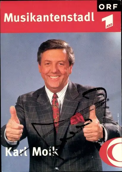Ak Moderator Karl Moik, Portrait, Musikantenstadl, Autogramm