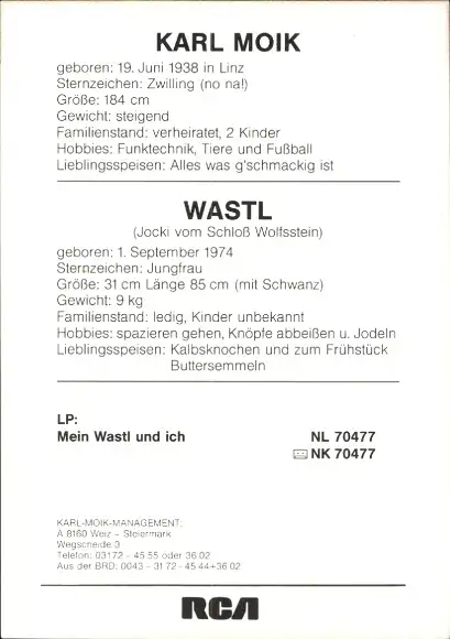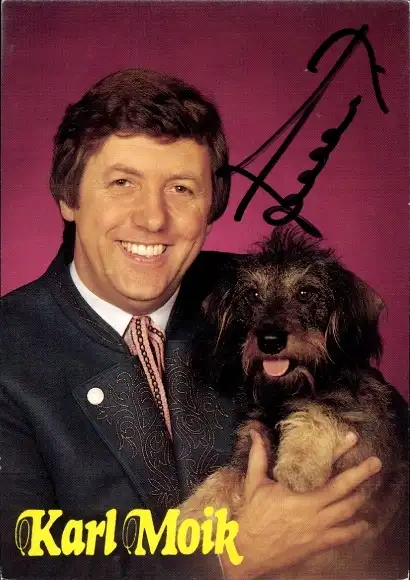 Ak Moderator Karl Moik, Portrait mit Wastl, Autogramm
