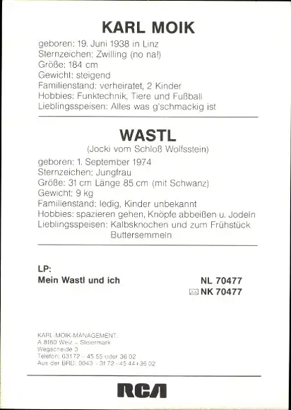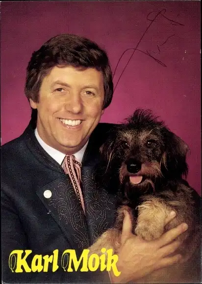 Ak Moderator Karl Moik, Portrait mit Wastl, Autogramm