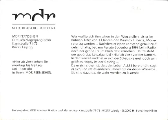 Ak Moderator Renato Bodenburg, Portrait, Sendung Hier ab vier, Autogramm