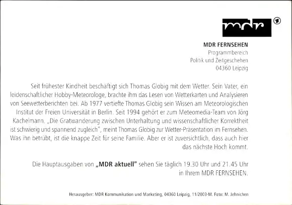 Ak Moderator Thomas Globig, Portrait, Autogramm