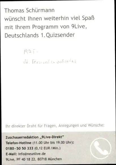 Ak Moderator Thomas Schürmann, Portrait, Autogramm