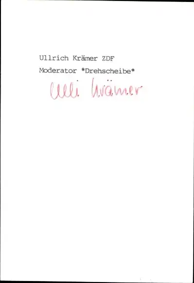 Ak Moderator Ulrich Krämer, Drehscheibe, ZDF, Portrait, Autogramm