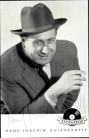Ak Moderator und Schauspieler Hans Joachim Kulenkampff, Portrait, Zigarette, Polydor, Autogramm