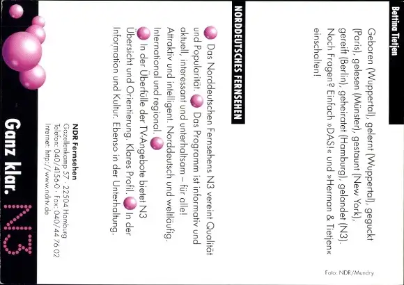 Ak Moderatorin Bettina Tietjen, Portrait, Autogramm