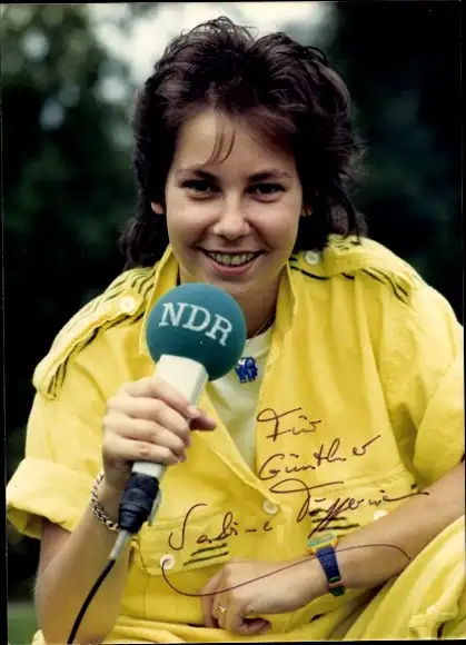 Ak Moderatorin Sabine Töpperwien, Portrait, Mikrofon, NDR, Autogramm