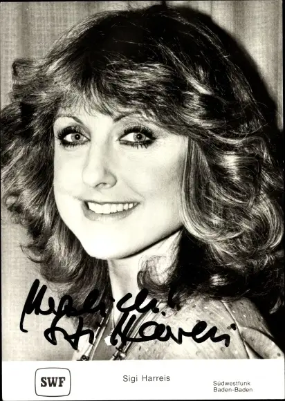 Ak Moderatorin Sigi Harreis, Portrait, Autogramm, Südwestfunk Baden-Baden