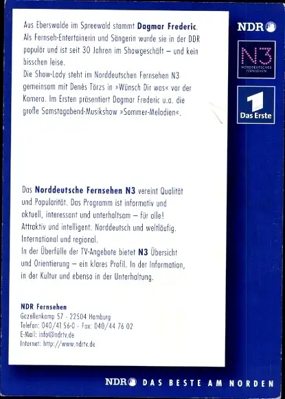 Ak Moderatorin und Sängerin Dagmar Frederic, Portrait, Autogramm