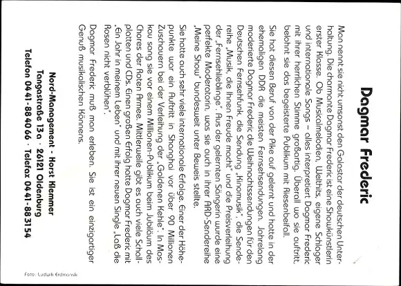 Ak Moderatorin und Sängerin Dagmar Frederic, Portrait, Autogramm