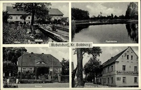 Ak Modlikowice Modelsdorf Niederschlesien, Fischteiche, Rinke's Gasthof, Schule, Mühle