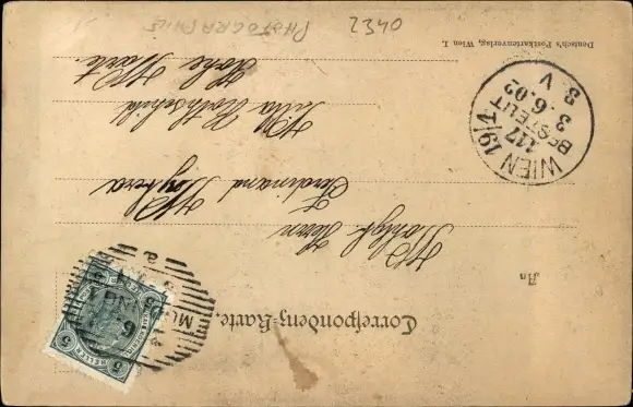 gelaufen 1902, Eckknick rechts unten, Stempelspur, sonst guter Zustand