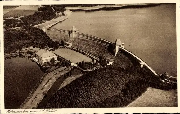 Ak Möhnesee in Nordrhein Westfalen, Sperrmauer, Fliegeraufnahme