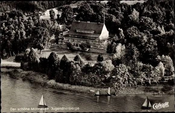 Ak Möhnesee in Westfalen, Jugendherberge, Luftbild