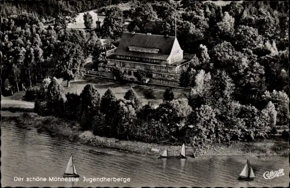 Ak Möhnesee in Westfalen, Jugendherberge, Segelboote