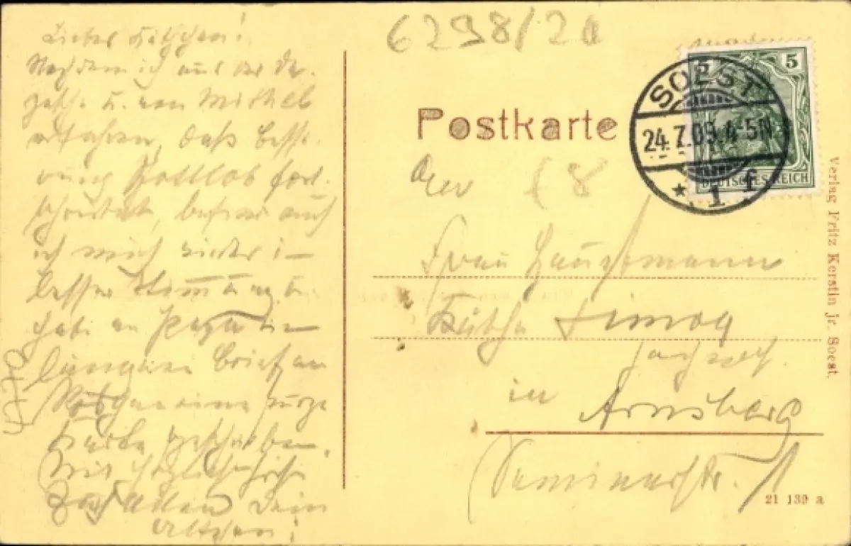 Zustand siehe Scan, gelaufen, 1909 - ca 14 cm X 9 cm