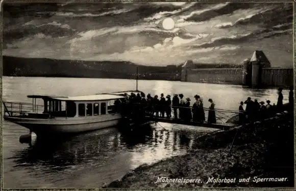 Ak Möhnesee in Westfalen, Möhnetalsperre, Motorboot, Sperrmauer