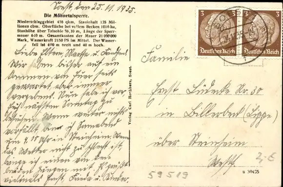 Zustand, siehe Scan, gelaufen, 1935 - ca 9 cm X 14 cm