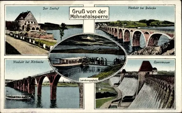 Ak Möhnesee in Westfalen, Möhnetalsperre, Seehof, Sperrmauer, Viadukt bei Delecke