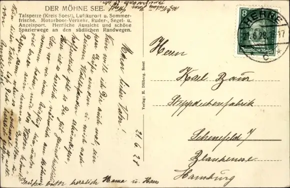 Zustand, siehe Scan, gelaufen, 1928 - ca 14 cm X 9 cm