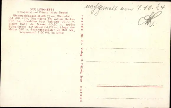 Ansichtskarte, Postkarte, Talsperre, Stausee, Staudamm, Staumauer